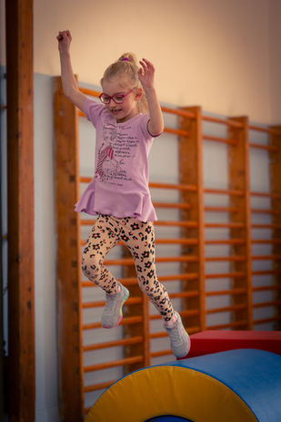 Zaměřujeme se na postupný rozvoj všeobecných motorických dovedností, obratnosti, koordinace a správného držení těla.